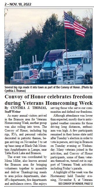 Convoy of Honor feature published in the Branson Globe